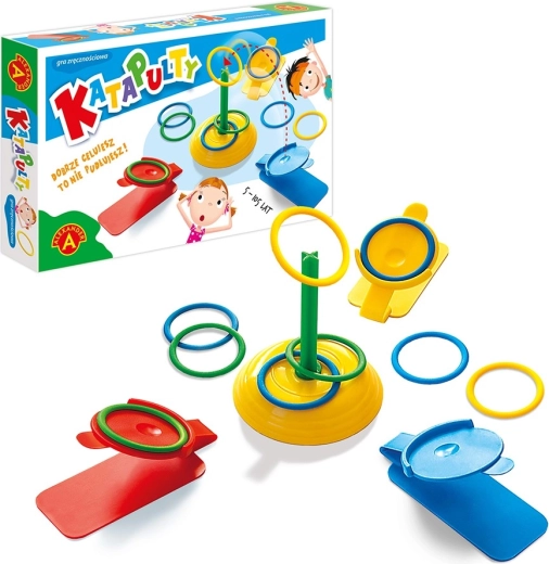 Zábavná rodinná hra Katapulty preverí vašu presnosť, koordináciu a jemnú motoriku. Pomocou katapultov vystreľujete plastové krúžky na vyčnievajúci stĺpik – jednoduché pravidlá, rýchla príprava a akčná zábava pre 1–4 hráčov od 5 rokov doma aj na cestách.