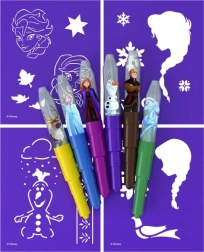 Fúkacie fixky s motívmi Ľadového kráľovstva prinesú deťom hodiny kreatívnej zábavy! Sada obsahuje 6 farebných fixiek a 4 rôzne papierové šablóny, ktoré sú inšpirované obľúbeným filmom.