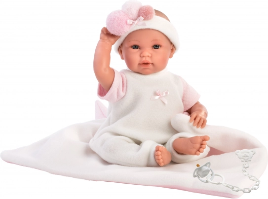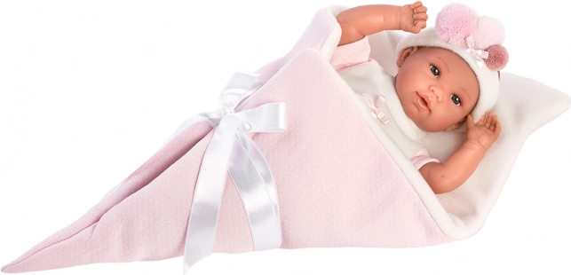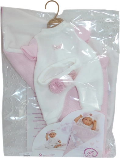 Doprajte svojej bábike útulné pohodlie s týmto 2-dielnym oblečením a zavinovacou podložkou v tvare kornútka pre bábiky NEW BORN veľkosti 35–36 cm. Ručná výroba zo Španielska zaručuje kvalitu a detailné spracovanie, ideálne na hranie sa na starostlivosť o bábätko od 3 rokov.