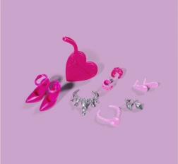 V balení nájdete 2 náhrdelníky, 2 páry náušníc, 2 náramky, kabelku v tvare srdca a lodičky na podpätku pre nekonečné stylingové možnosti.
