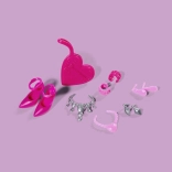 - Bohaté príslušenstvo: 2 náhrdelníky, 2 páry náušníc, 2 náramky, kabelka v tvare srdca, lodičky na podpätku.