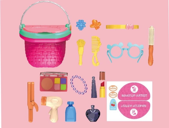 Objavte kúzlo líčenia a starostlivosti o vlasy s týmto roztomilým herným setom v praktickom košíku. Nájdete v ňom až 18 doplnkov, ako je parfum, rúž, očné tiene, fén a doplnky do vlasov – ideálne na kreatívnu hru a rozvoj fantázie.
