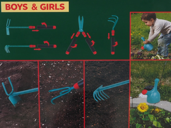Sada bezpečných záhradníckych nástrojov pre deti od 3 rokov. Sada obsahuje všetko potrebné na prácu v záhrade. Náradie je bezpečné, nemá ostré hrany a má ideálnu veľkosť pre malé ruky. Rukoväte náradia sú navyše odnímateľné. Sada je vyrobená v univerzálnom farebnom prevedení, ktoré je ideálne pre chlapcov aj dievčatá. |