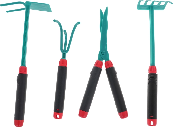 - rukavice, - veľká krhla, - motyčka - ručný kultivátor, - nožnice, - hrable. |