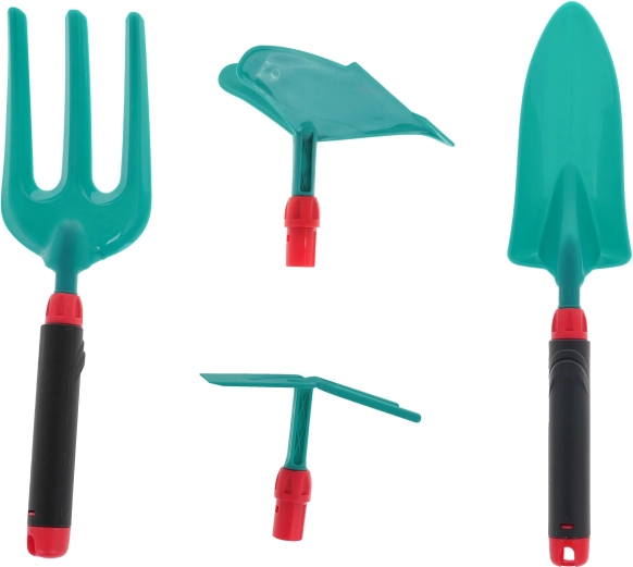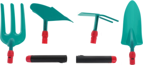 Praktické odnímateľné rukoväte uľahčia prenos aj ukladanie nástrojov. Ľahká a odolná konštrukcia je ideálna pre prvé záhradnícke pokusy na záhrade, balkóne aj v kvetináči.