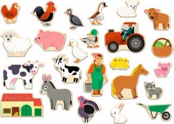 Sada Djeco Magnetky Na farme prináša deťom svet farmy priamo do detskej izby. V balení nájdete 24 kvalitných drevených magnetiek s krásnymi ilustráciami z farmárskeho prostredia – zvieratká, traktor, farmár aj doplnky. Skvele sa hodia na magnetické tabule aj dvierka chladničky.