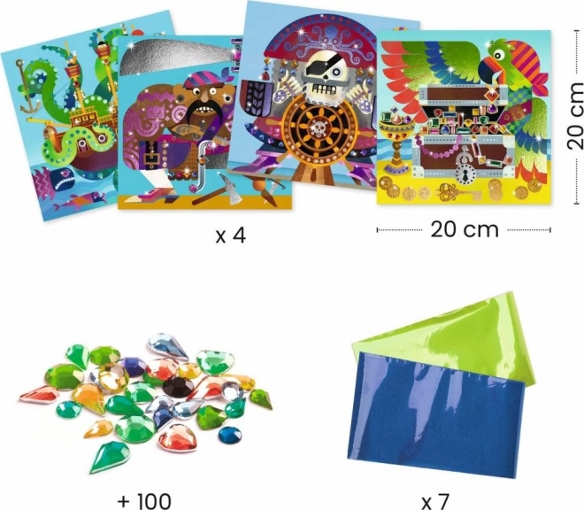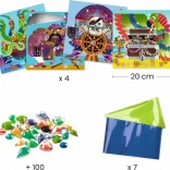 Oživte pirátske dobrodružstvo vďaka tejto kolážovej aktivite, ktorá zabaví každého malého umelca. Vaše deti sa môžu tešiť na zdobenie 4 obrázkov s pirátskou tematikou pomocou fólií a kamienkov.