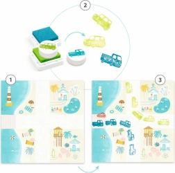 Pečiatkovací set Autá od DJECO je perfektný nástroj pre malých umelcov, ktorý obsahuje všetko potrebné pre tvorbu nádherných obrázkov s motívom áut. Deti si môžu vytvoriť vlastné scény a príbehy pomocou farebných pečiatok a kariet.