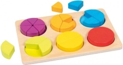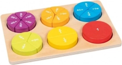 Drevené vzdelávacie puzzle Zlomky je ideálnou pomôckou pre malé deti, ktoré sa chcú naučiť základy matematiky vo forme zábavnej hry. Vďaka farebným segmentom a jednoduchému dizajnu si deti ľahko osvoja koncepty ako polovice, štvrtiny a ďalšie zlomky. Drevený podklad uľahčuje skladanie a zabezpečí dlhšiu životnosť produktu.