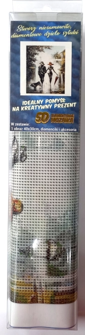 V balení nájdete všetky potrebné komponenty: predtlačené plátno, aplikačné pero, misku, vosk a sadu farebných kamienkov. Pomocou aplikačného pera nanášate kamienky na predom označené miesta na plátne, bez potreby umeleckých schopností. Výsledný obraz môžete jednoducho zarámovať (rám nie je súčasťou balenia) a premeniť na krásny dekoratívny prvok.