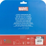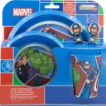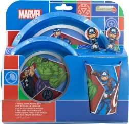 Táto čarovná detská jedálenská sada je navrhnutá tak, aby bol každý okamih pri jedle zábavný a príjemný. Deti sa môžu tešiť na obľúbené postavy Avengers počas raňajok, obeda či večere. Sada obsahuje: