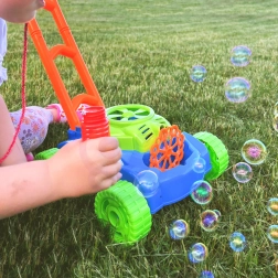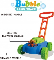 Zábavná detská kosačka na trávu od značky WOOPIE, ktorá pri jazde automaticky vytvára bubliny a pridáva realistické zvuky aj veselú melódiu. Ideálna na aktívne vonkajšie hranie, rozvoj motoriky a napodobňovanie dospelých.