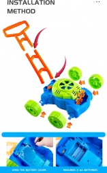 Vo vnútri kosačky pracuje malý ventilátor, ktorý ženie vzduch na 8 rotujúcich krúžkov. Tie sa striedavo namáčajú v nádržke s tekutinou a posielajú bubliny cez trysku – vďaka tomu vzniká množstvo bubliniek bez prerušenia. Sprievodné zvuky bubliniek a melódia z rozprávky podčiarkujú radosť z hrania.