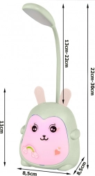 Táto rozkošná nočná a stolová lampička spája hravý dizajn s praktickými funkciami. Flexibilné rameno umožní ľahko nasmerovať svetlo na knižku či pracovný zošit, zatiaľ čo telo lampičky vytvára útulnú atmosféru na pokojné zaspávanie.