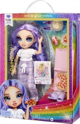 Vďaka plnej kĺbovej pohyblivosti (hlava, ramená, lakte, ruky, boky, kolená) je Violet pripravená na pózovanie, fotenie aj filmové scenky z obľúbeného seriálu. Tematické doplnky k filmovému večeru – pizza v krabici, popcorn, tanierik a limonáda – otvárajú priestor pre hodinovú imaginatívnu hru.