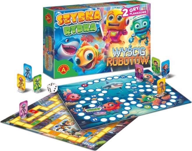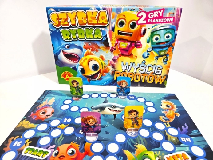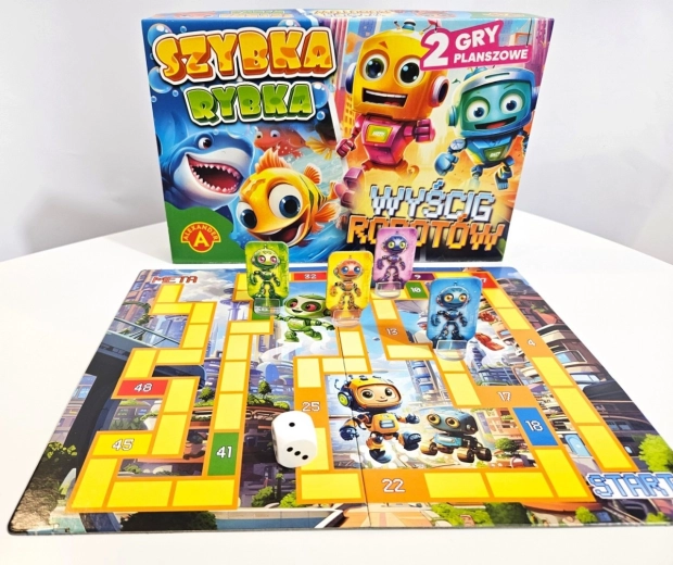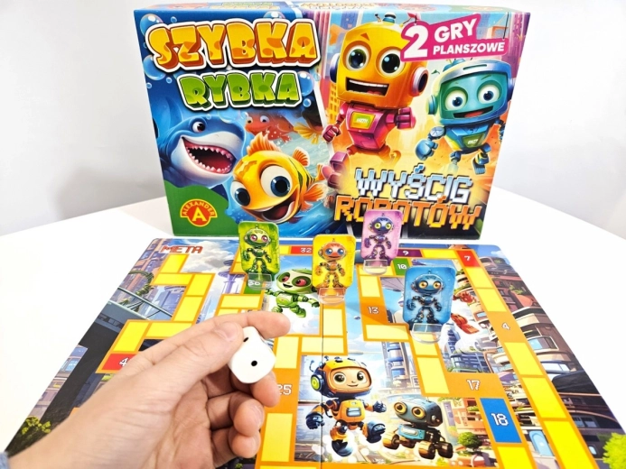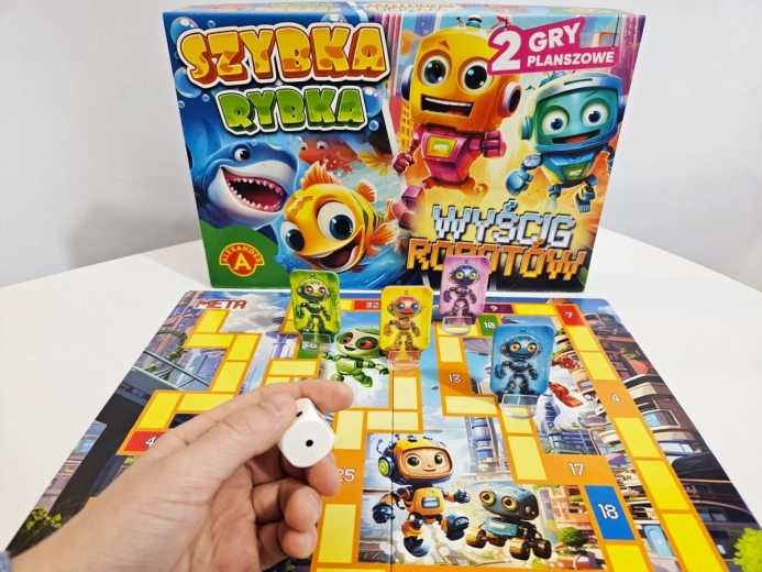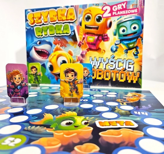 Objavte zábavný svet prvej stolovej zábavy so sadou dvoch hier pre malé deti – Szybka Rybka a Wyścig Robotów. Obojstranná herná doska, farebné figúrky a jednoduché pravidlá učia najmenších hráčov základy hrania, rozvíjajú postreh, spolužitie v kolektíve a radosť zo súťaženia. Ideálne pre rodiny s deťmi od 4 rokov a pre 2–4 hráčov.