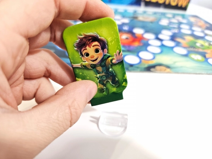 - Obojstranná herná doska; figúrky potápačov (4 ks); figúrky robotov (4 ks); podstavce pod figúrky (4 ks); kocka; návod
