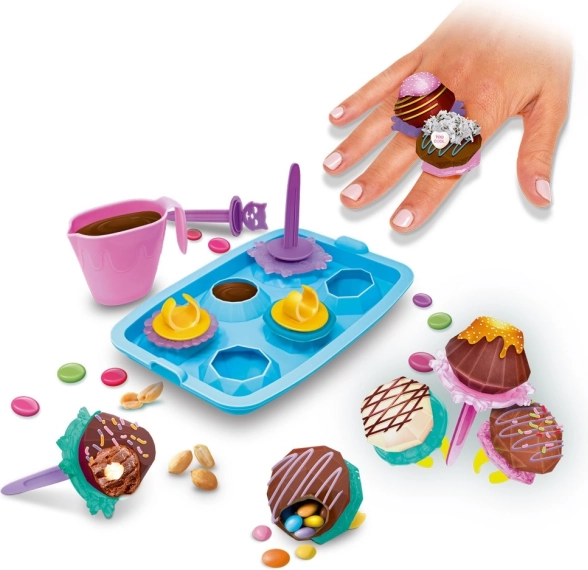 Vytvorte si vlastné jedlé šperky s kreatívnou sadou KUK FUN! S touto zábavnou sadou ľahko vyrobíte čokoládové prstienky a čokoládky na špajli – stačí roztopiť čokoládu, naliať ju do formy, pridať obľúbené posýpky a nechať stuhnúť v chladničke. Skvelá rodinná aktivita, ktorá podporuje kreativitu a jemnú motoriku. (Potraviny nie sú súčasťou balenia.)