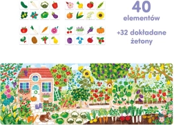 Jasne farebné a veľké puzzle sa skladá zo 40 dielikov a zobrazuje rozkvitnutú záhradu a sad. Na ďalších dielikoch je 32 druhov ovocia a zeleniny, ktoré si môžete dopĺňať. To umožňuje veľa fascinujúcej a všestranne rozvíjajúcej zábavy pre lepšie pochopenie a zapamätanie si toho, čo rastie v záhrade. Množstvo zaujímavostí o prírode nájdete na plagáte priloženom k puzzle. Vzdelávacia sada sa osvedčí ako šikovný nápad na darček pre zvedavého predškoláka.
