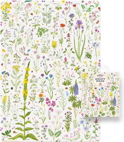 Vstúpte do pestrofarebného kráľovstva kvetov a zložte si jedinečnú ilustráciu plnú divokých rastlín, ktoré nájdete na lúkach. Puzzle Puzzlove s 1000 dielikmi sú skvelou voľbou pre každého, kto miluje prírodu, pokojné chvíle a zmysluplný oddych. Po zložení získate obraz o veľkosti 48 × 68 cm, ktorý sa skvele hodí na zarámovanie a vyzdobenie domova.