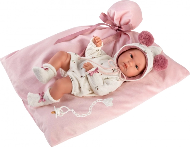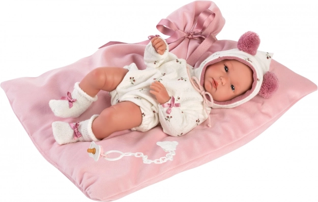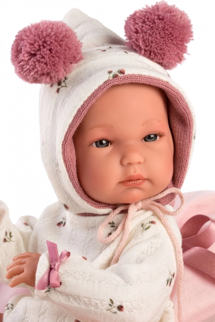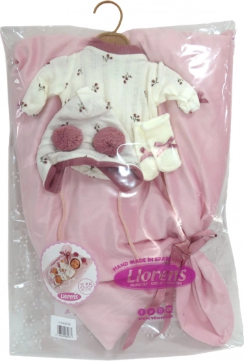 Súčasťou je mäkká deka s mašľou na pohodlné uloženie bábiky, praktické balenie s priehľadným obalom a plastovým vešiakom a precízne ručné spracovanie zo Španielska, ktoré zaistí dlhú životnosť aj pri častom hraní.
