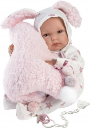 Roztomilé dvojdielne oblečenie pre bábiku bábätko New Born vo veľkosti 35–36 cm prináša pohodlie a štýl pre každú hru. Set obsahuje dlhý rukáv a nohavice so vzorom hviezdičiek a zajačika, doplnené o mäkkú podložku s trojbodovým uchytením na bezpečné prenášanie alebo odpočinok bábiky. Ručne vyrobené v Španielsku z príjemných materiálov, ideálne pre kreatívnu a starostlivú hru detí od 3 rokov.