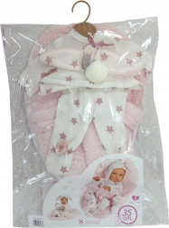 Doprajte svojej bábike dokonalé pohodlie v krásnom oblečení s jemným zajačím motívom a hviezdičkami. Oblečenie je navrhnuté pre bábiky New Born vo veľkosti 35–36 cm a vďaka precíznej ručnej výrobe zo Španielska sa pýši kvalitným spracovaním a hebkými, na dotyk príjemnými materiálmi.