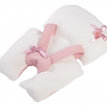 Mäkká podložka s dekoratívnou mašľou a bezpečnými popruhmi poslúži ako praktická stolička pre stabilné usadenie bábiky.