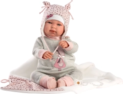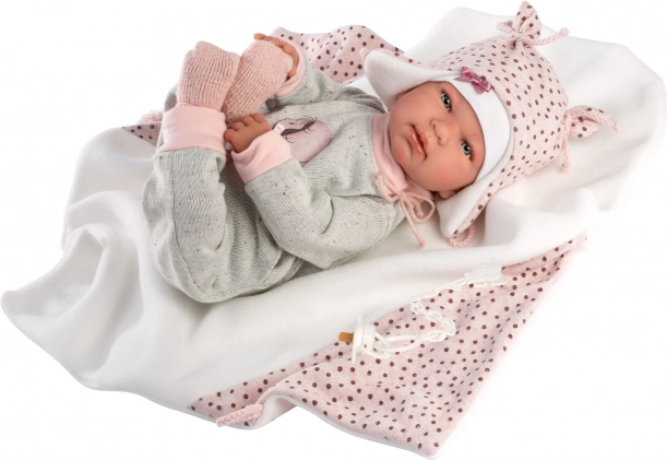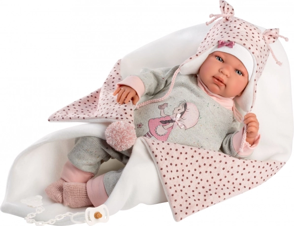 Súčasťou sady je štýlová deka s bambuľkou na zaviazanie, ktorá doladí vzhľad bábiky a spríjemní hru na uspávanie.