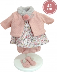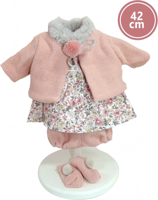 Štýlový 4-dielny obleček pre bábiku veľkosti 42 cm od Llorens, vyrobený ručne v Španielsku. Skvele sa hodí na pretváranie obľúbených bábik do nových outfitov.
