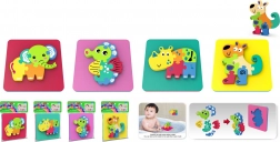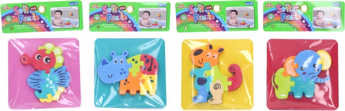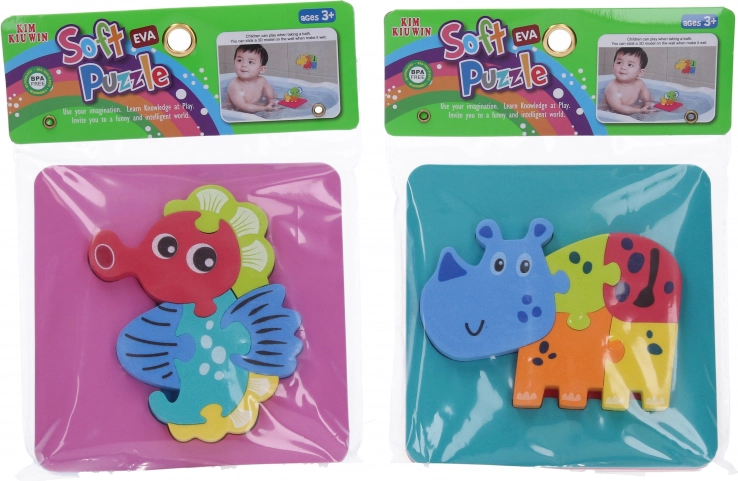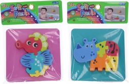 Objavte zábavu s mäkkým penovým puzzle vo formáte 14x14 cm, ktoré obsahuje roztomilé tvary zvieratiek.