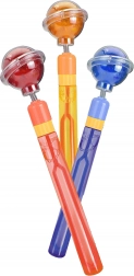 Bublifuk je k dispozícii v štyroch výrazných farbách – červenej, oranžovej, modrej a fialovej – takže si každý vyberie svoju obľúbenú. 3× AG3 batérie sú už vložené a nedajú sa vymieňať, takže zábava môže začať hneď po rozbalení.