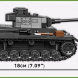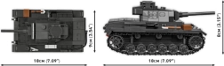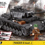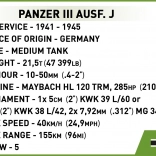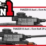 COBI Panzer III Ausf. J je precízne spracovaná stavebnica inšpirovaná východným frontom druhej svetovej vojny. Model ponúka otvoriteľný poklop, otočnú vežu, pohyblivú hlaveň a funkčné kolesá s pásmi. Vďaka bohatým potlačiam pôsobí tank realisticky a verne kopíruje tvary historického originálu.