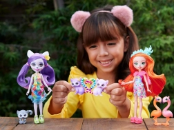 Bábika Lorinda Lemur a traja zvierací kamaráti prinášajú do hry nehu, priateľstvo a množstvo príbehov inšpirovaných svetom ENCHANTIMALS.