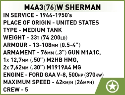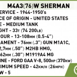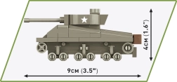 Objavte legendárny americký stredný tank M4A3 Sherman v elegantnej mini mierke. Model s dĺžkou približne 9 cm verne zachytáva kľúčové rysy skutočného stroja vrátane amerických označení, pričom si zachováva skvelú stavebnú zábavu a odolnosť typickú pre značku COBI.
