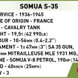 SOMUA S-35 patril medzi najlepšie francúzske tanky na začiatku druhej svetovej vojny. Vyznačoval sa charakteristickou siluetou, elektricky poháňanou otočnou vežou a účinným 47 mm kanónom. Táto stavebnica verne zachytáva kľúčové rysy legendárneho stroja v kompaktnom prevedení, ktoré si nájde miesto na pracovnom stole aj v poličke zbierky.