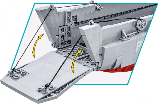 Predná rampa sa realisticky spúšťa a zdvíha pomocou lankového mechanizmu – ideálne pre dynamické scény vylodenia a autentické vystavenie modelu.