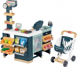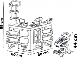 Zábavný a interaktívny supermarket SMOBY je ideálny pre deti, ktoré sa chcú ponoriť do sveta nákupov a predajov. Tento hrací set obsahuje všetko, čo by ste očakávali v skutočnom obchode, vrátane pokladne so svetelným a zvukovým skenerom, mechanickej váhy a čítačky kreditných kariet. Skvelým doplnkom je nákupný košík, ktorý uľahčuje detské hry na nakupovanie.