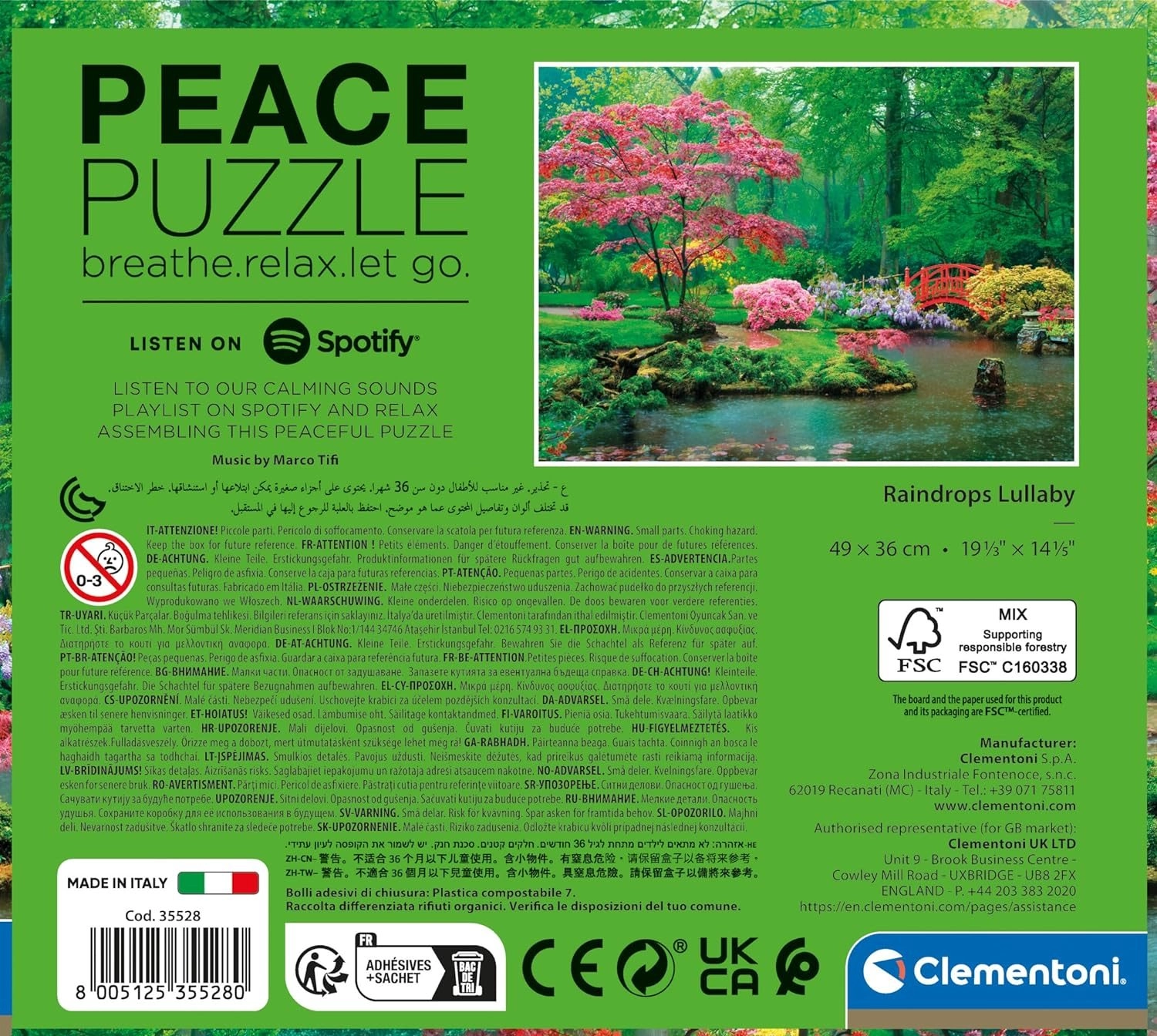 Ponorte sa do meditativneho tempa skladania s puzzle Peace Collection: Raindrops Lullaby. Táto elegantná kolekcia od značky Clementoni je navrhnutá tak, aby podporila sústredenie, uvoľnenie a vizuálne potešenie. Kvalitná tlač s výraznými farbami a presné zámky zabezpečujú, že každý dielik do seba hladko zapadne.