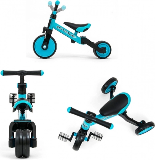 Odrážadlo 3v1 OPTIMUS rastie s vaším dieťaťom – od prvých krôčikov v režime stabilnej trojkolky, cez tréning šliapania s pedálmi, až po rýchle a ľahké klasické odrážadlo. Vďaka kvalitným materiálom a premyslenej konštrukcii podporuje rozvoj motoriky, sily nôh a koordinácie.