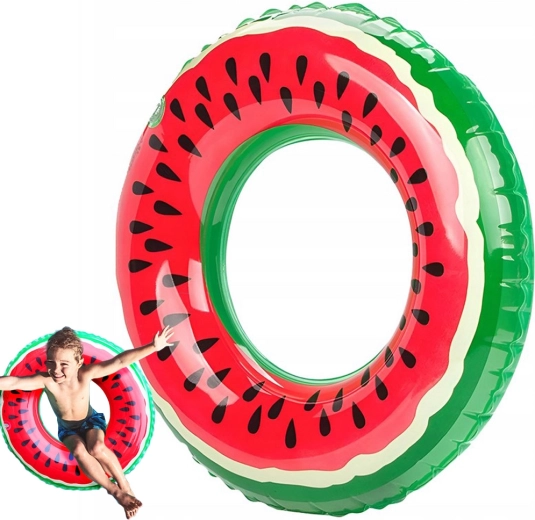 Nafukovací kruh vyzerá ako skutočný melón, čo z neho robí jedinečný doplnok pre zábavu vo vode.