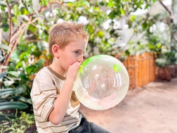 GLUMI Jumbo bublina je veľká, pružná a odolná hračka, ktorá premení záhradu aj detskú izbu na zónu plnú smiechu a pohybu. Vďaka možnosti nafúknuť ju až na priemer cca 75 cm je skvelá pre aktívne hranie, tréning rovnováhy a koordinácie.