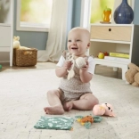 Objavte zmyslovú zábavu pre novorodencov s darčekovou sadou FISHER‑PRICE Svet zmyslov. V balení nájdete 4 rozkošné hračky: silikónové králičie hryzátko bez BPA, mäkučkého axolotla so zvončekom, hmatovú hrkálku‑motýľa s klipom a mäkký šuštivý panel so stužkou. Hračky sa ľahko držia v malých rúčkach, podporujú jemnú motoriku aj rozvoj zraku, sluchu a hmatu. Klip umožní pripnutie na kočík, tašku alebo hraciu podložku, takže si ich užijete aj na cestách.