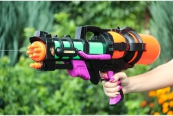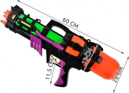 Táto vodná pištoľ kombinuje veľkosť, výkon a pohodlie. Obrovská nádrž s objemom 1,25 litra predĺži hru bez častého dopĺňania a dosah cca 6 metrov zaistí pôsobivý prúd vody. Ovládanie je jednoduché: odskrutkujte zásobník, naplňte vodou, uzavrite a pomocou spodného posúvača napumpujte – pripravené na striekanie.
