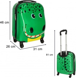 Tento ľahký a odolný detský kufor je ideálny ako príručná batožina. Lesklý zelený povrch s veselou grafikou krokodíla deti zaujme, zatiaľ čo rodičia ocenia praktickú výbavu pre pohodlné cestovanie.