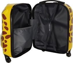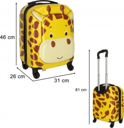 Detský kufor so žirafím motívom je ideálny spoločník na víkend aj dovolenku. Štyri otočné kolieska a výsuvná rukoväť zabezpečujú pohodlné manévrovanie, takže ho bez ťažkostí zvládnu aj malé deti. Tvrdý plastový plášť chráni obsah a zároveň sa ľahko udržiava.
