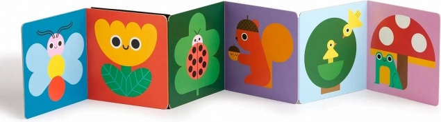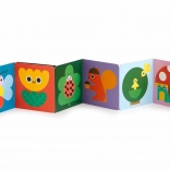 Krásne ilustrácie a bezpečné zrkadielko stimulujú zmyslový vývoj a podnecujú zvedavosť.