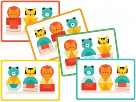 Každé zvieratko je zložené z geometrických tvarov a ponúka deťom možnosť stavať podľa návodu alebo podľa vlastnej fantázie: