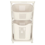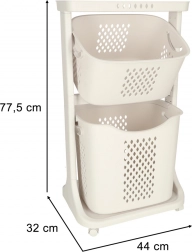 Elegantné a funkčné riešenie na každodennú organizáciu domácnosti. Dva priestranné koše umožnia pohodlné triedenie bielizne alebo uskladnenie hračiek a drobností. Perforovaný vzor podporuje cirkuláciu vzduchu, takže obsah zostáva dlhšie svieži.