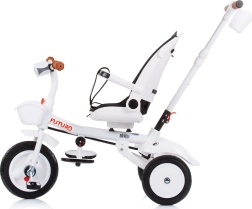 Trojkolka Chipolino Futuro 2v1 sa prispôsobí aktuálnym potrebám dieťaťa aj rodičov. V režime s rodičovským vedením zabezpečí plnú kontrolu, neskôr je možné prejsť na samostatné šliapanie. Sedadlo možno otočiť v smere aj proti smeru jazdy a ponúkne tiež 2 polohy náklonu pre väčšie pohodlie na dlhších prechádzkach.